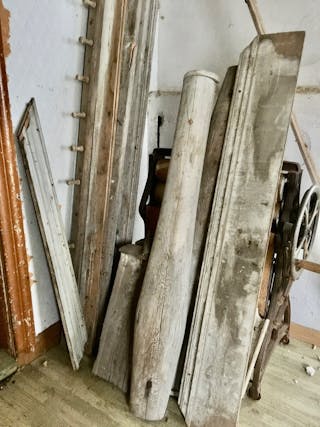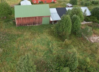 Foderlada byggd för torkning och lagring av hö. Används till vinterförvaring av båt.