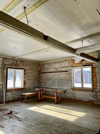 Byggnaden har välbevarat bottenplan från 1850–60-talet med bibehållna breda golvtiljor och handbilad timring som vittnar om gediget byggnadshantverk, som ger byggnaden en genuin och autentisk atmosfär. Här finns spår av historien bevarad i allt från det dekormålade taket i pörtet, de massiva timmerväggarna till den murade bakugnen och järnspisen i pörtet.