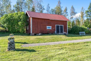 Före detta magasin uppförd med stomme av trä, fasad av stående träpanel under tak av lertegel. Används som förråd och snickarbod.