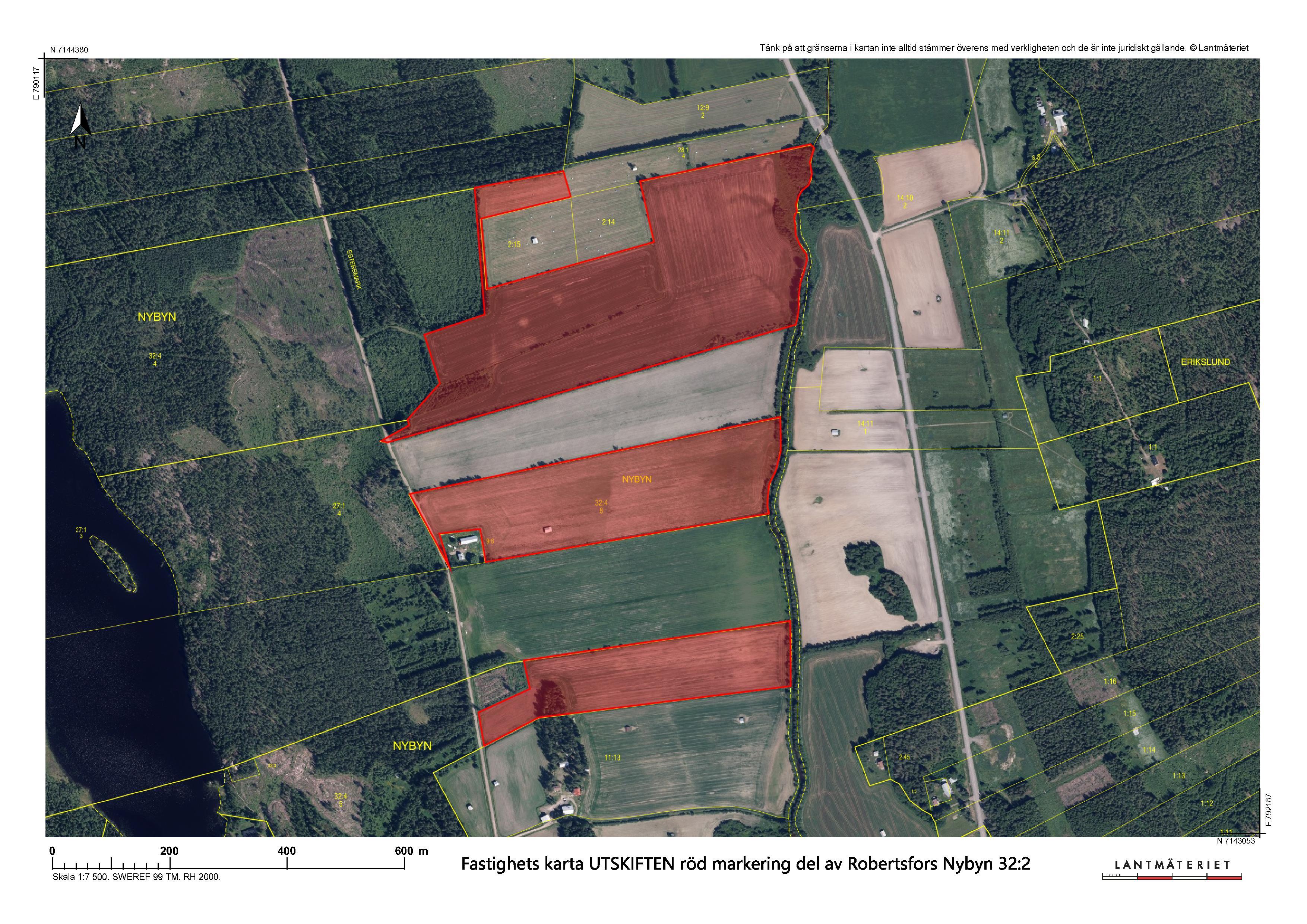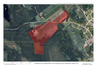 Försäljningen avser del av fastigheten och kommer att genomföras genom avstyckning. Den del som avses avyttras utgör del av gårdsskiftet samt delar av utskifterna i enlighet annonsens kartmaterial. Den del som avstyckas utgörs huvudsakligen av skogsmark. Säljaren ansvarar för och bekostar erforderlig lantmäteriförrättning för avstyckningen. Tillträde kan ske först sedan avstyckningen vunnit laga kraft. Köparen ansvarar för att efter tillträdet genomföra ny taxering av fastigheten.