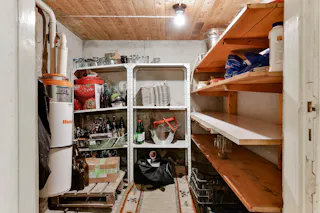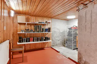 Källarplanet innehåller en stor matkällare, tvättstugedel samt groventré.