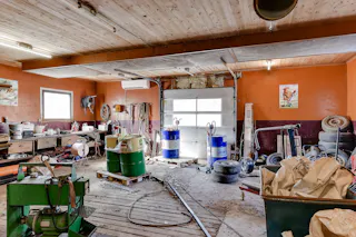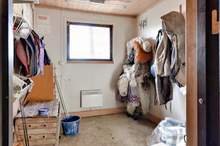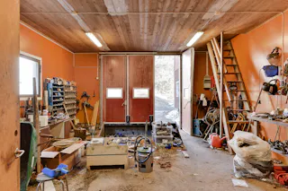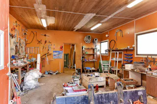 I direkt anslutning finns en isolerad maskinverkstad om cirka 120 kvm, utrustad med betonggolv och luftvärmepump. Byggnaden är uppdelad i två delar, där den ena delen har garageport och den andra traktorport, vilket ger god tillgänglighet och flexibilitet för olika typer av maskiner och arbeten. Lokalen erbjuder goda arbetsförhållanden året runt och kan vid behov anpassas för att skapa ytterligare djurplatser.