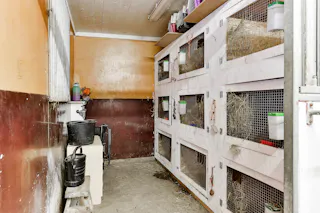 För hästhållning finns tre boxar med tillhörande sadelkammare. I den äldre ladugårdsbyggnaden finns även hönshus, kaninburar samt förrådsutrymmen som möjliggör mindre djurhållning och praktisk förvaring.
