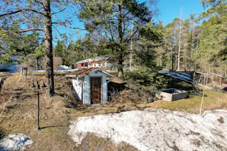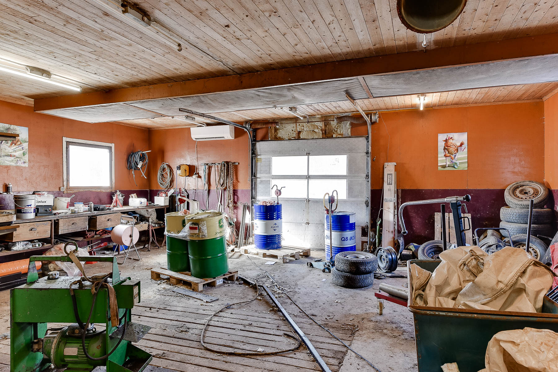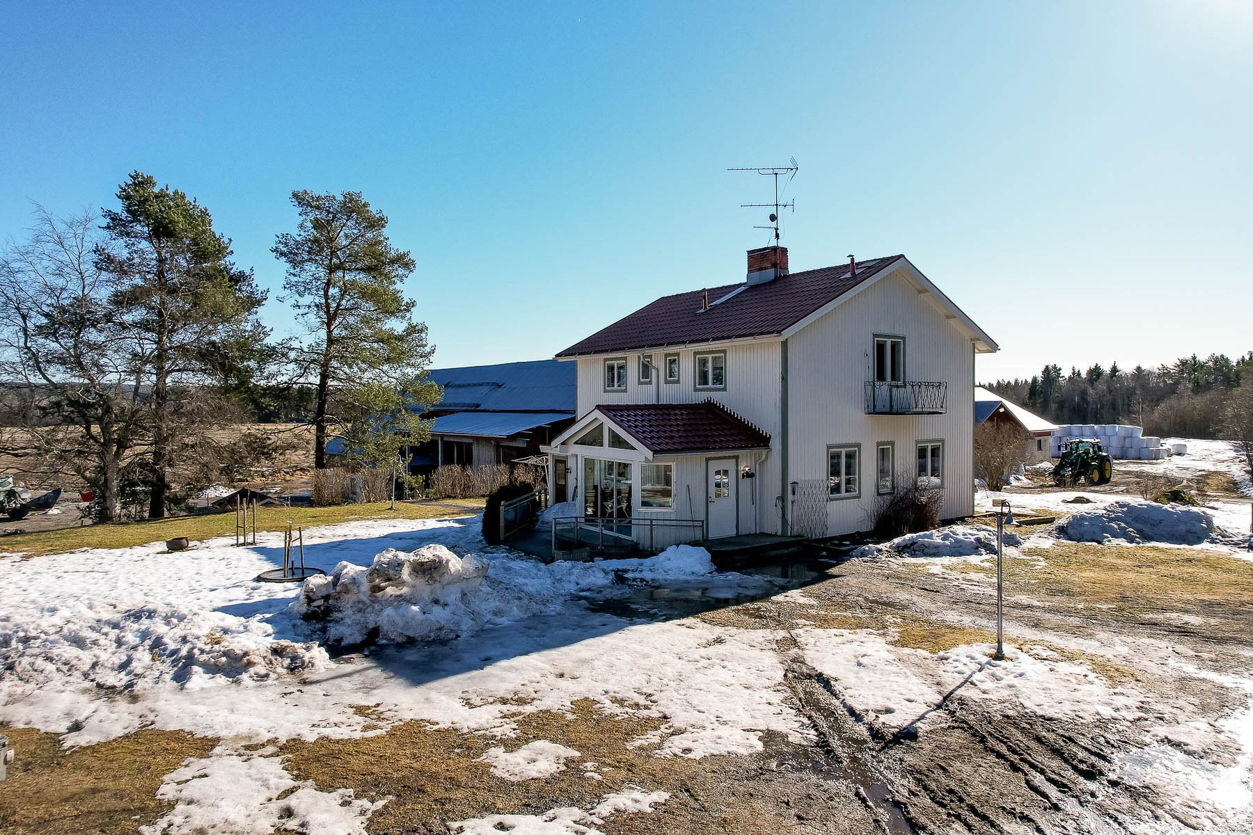 Därtill finns flera kompletterande byggnader såsom garage, maskinverkstad och förrådsutrymmen, vilket ger generösa ytor för förvaring, hobby eller företagsverksamhet.